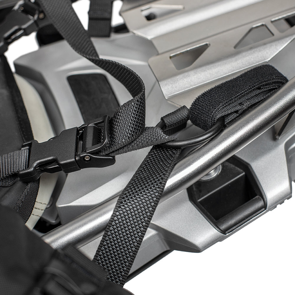 Rackless means just that: this lightweight harness is all you need to securely mount Kriega OS-ADVENTURE PACKS to your motorcycle. No extra hardware, frames or brackets are needed. Easy to fit in minutes and guaranteed to last for years. This rugged luggage system can grow with you and be tailored to your adventures.